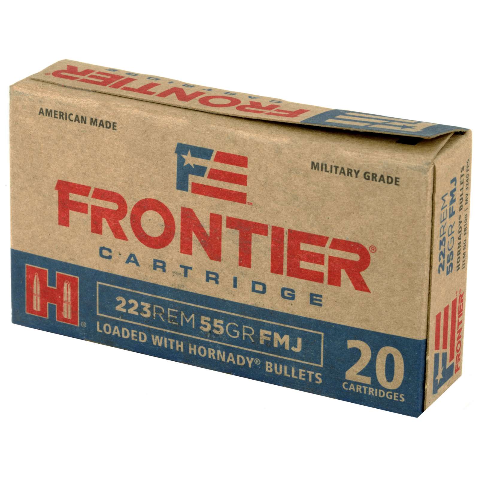 HORNADY FRONTIER 223 REM 55GR FMJBT 20RD BX 500RD CS